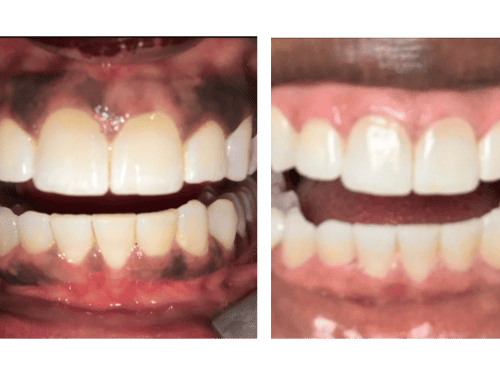 Laser depigmentation is a dental procedure that removes dark spots on the gums. The dark spots are caused by extra melanin, and by using precise laser technology, the pigmented tissue layers are gently ablated to reveal lighter, pink tissue beneath. The procedure is quick, typically completed in one visit with minimal discomfort. The laser simultaneously cauterizes treated areas, reducing bleeding and promoting faster healing. Results create a more uniform gum appearance, with most patients healing completely within one to two weeks.